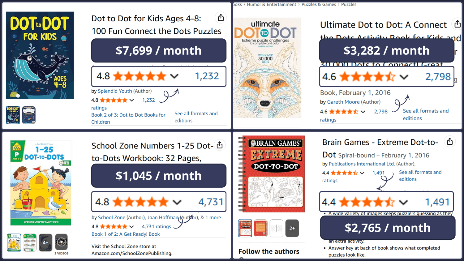 On Amazon, Dot-to-Dot Books show strong sales and high ratings, proving that demand is real and stable.