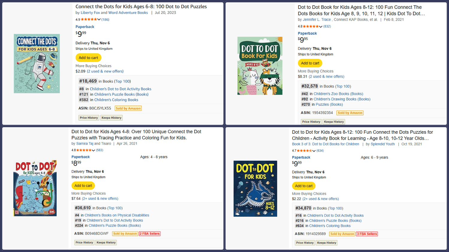 On Amazon, Dot-to-Dot Books show strong sales and high ratings, proving that demand is real and stable.