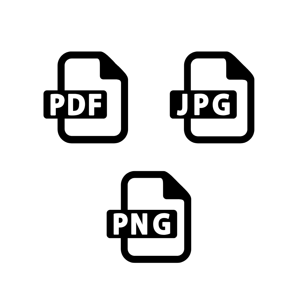 Download your work as high-quality PDF, JPG, and PNG files at 300 DPI for professional printing results