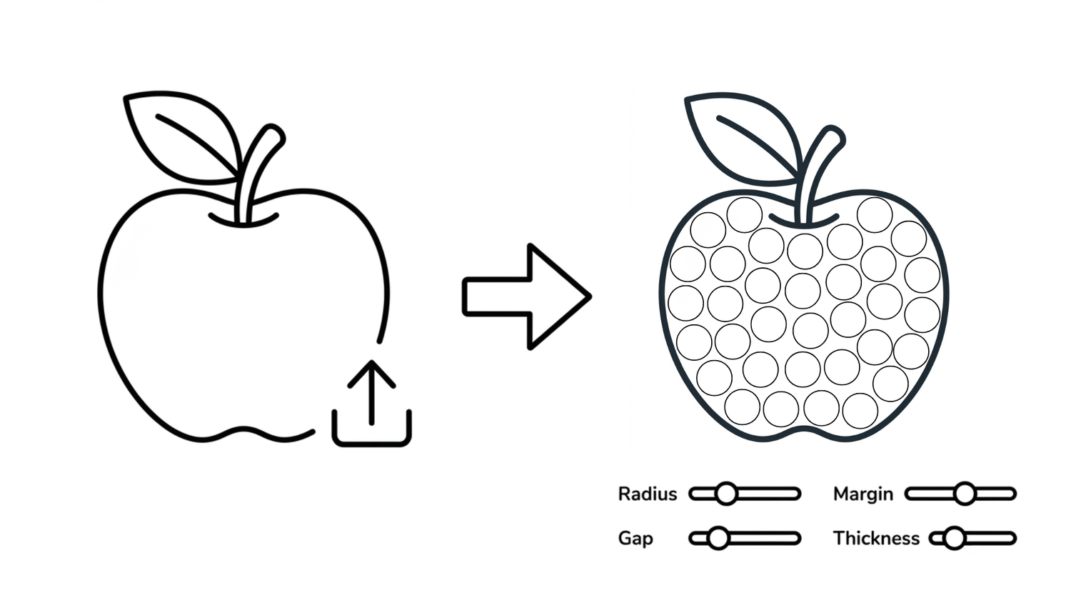 You can use the built-in AI tool or upload your own outline image. The system will automatically convert it into a complete dot marker image. At this stage, you have full control over settings like radius, gap, margin, and thickness to get the result you want.