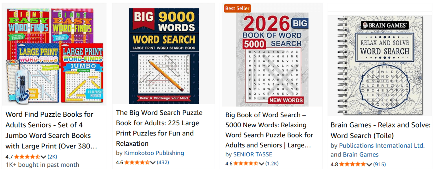 But with popularity comes competition. A quick search for “Word Search Books” brings up more than 30,000 results on Amazon. It’s a crowded space where it’s hard to stand out, even if your book is well-made.