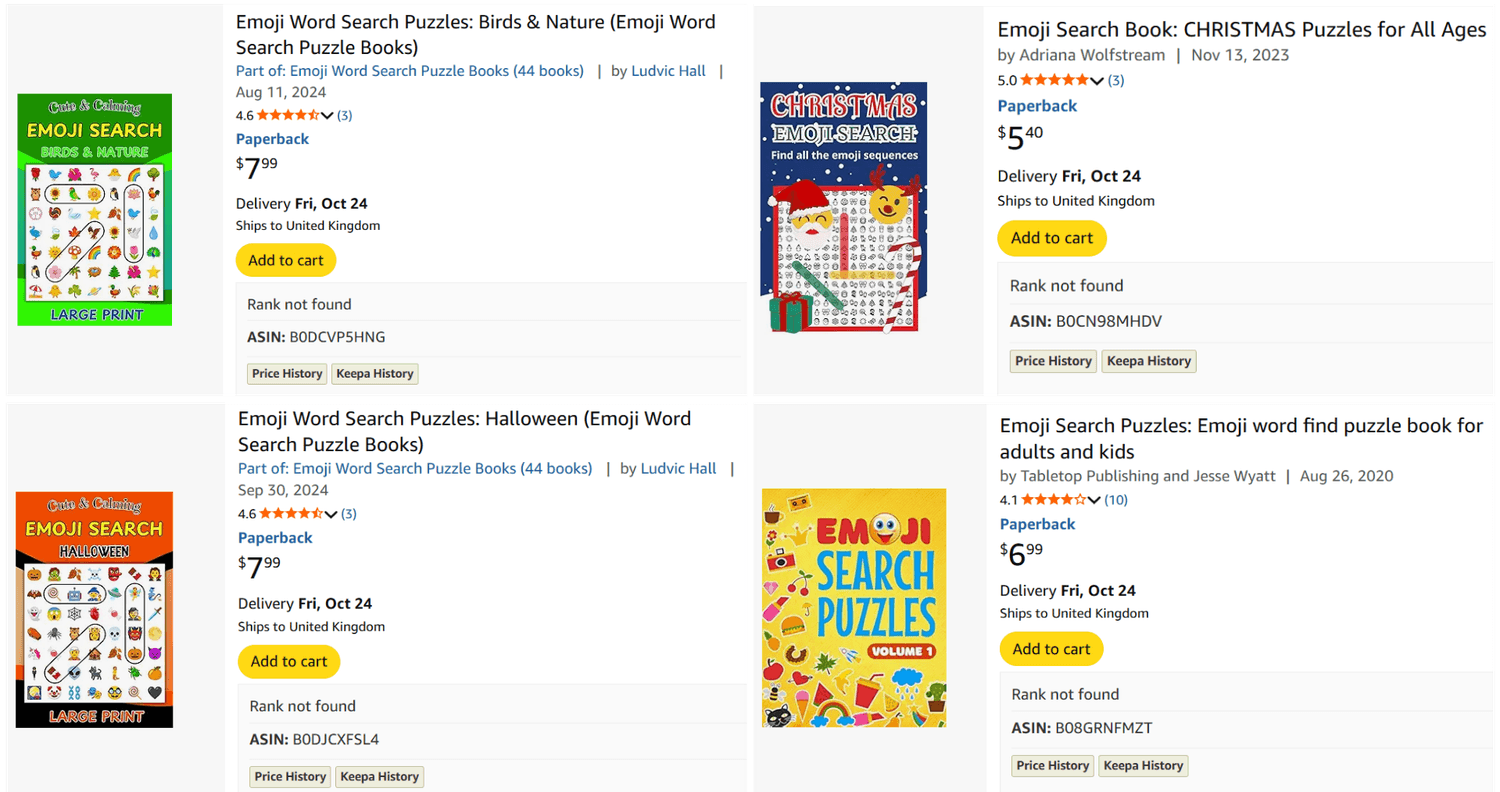 Now here’s something interesting. When you search for “Emoji Word Search Puzzles,” there are only around 273 results. It’s a smaller niche, but one that’s growing quickly and still has plenty of room for new creators.
