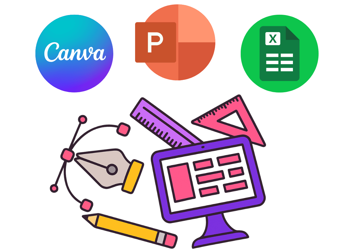 You’ll need to be comfortable using tools like Canva, PowerPoint, or Google Sheets well enough to align and format everything correctly.
