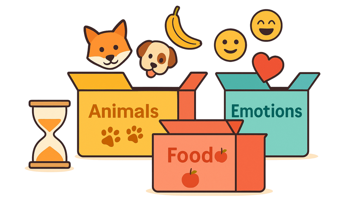 Start by picking a specific theme such as animals, food, or emotions.