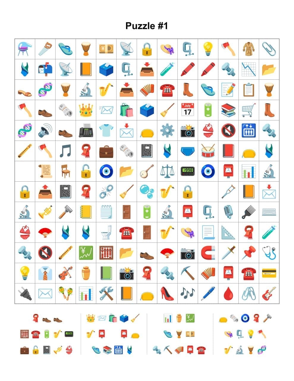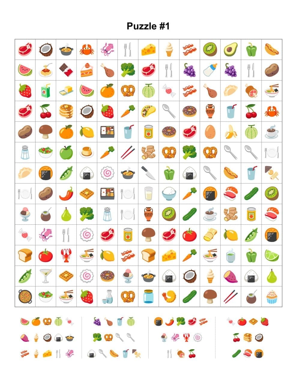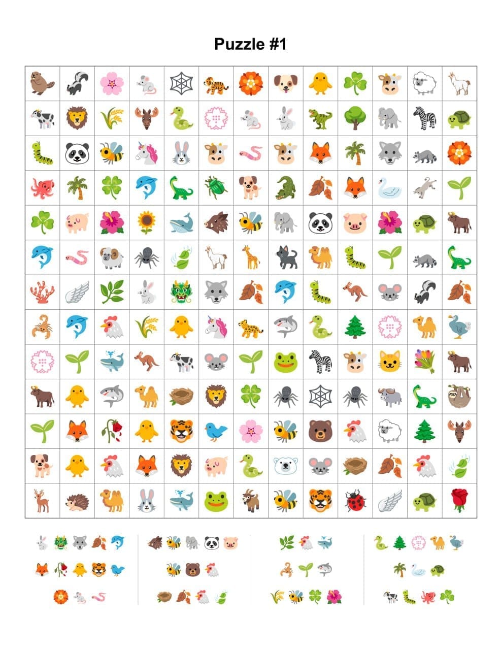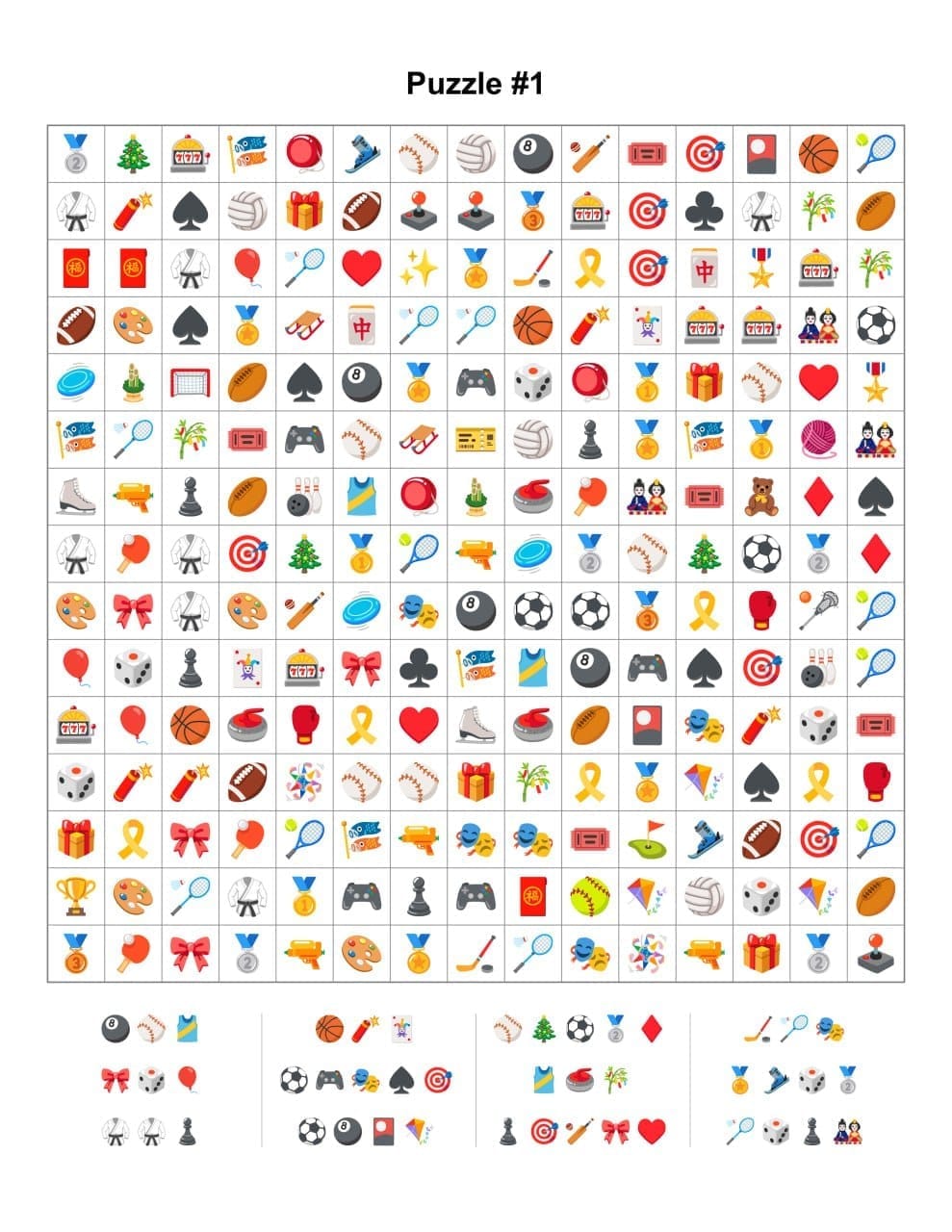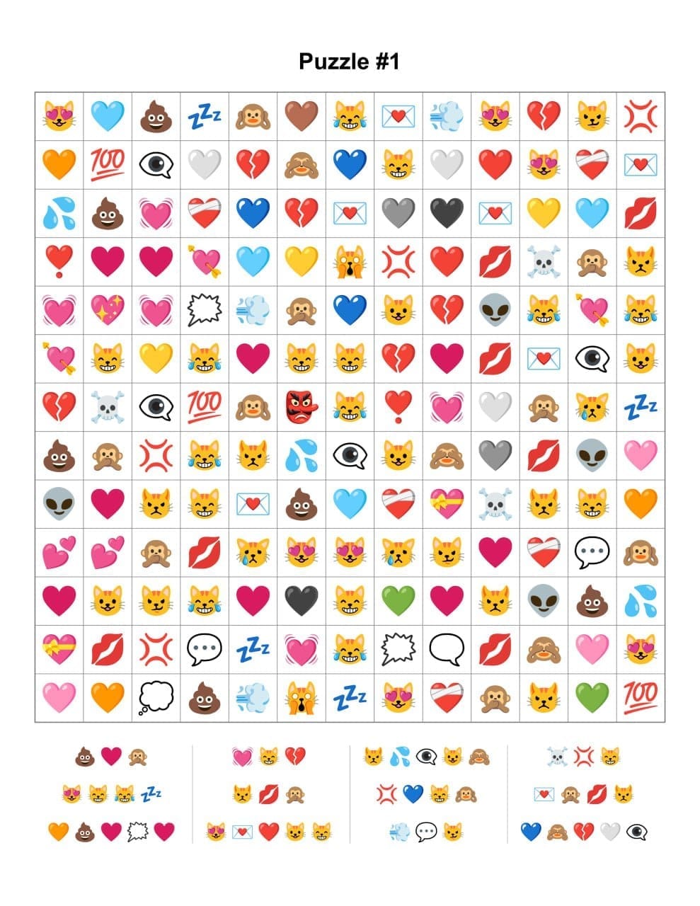 Choose a grid size such as 8x8 or 12x12 and arrange your main emojis in horizontal, vertical, or diagonal lines. Fill the remaining empty cells with random emojis.