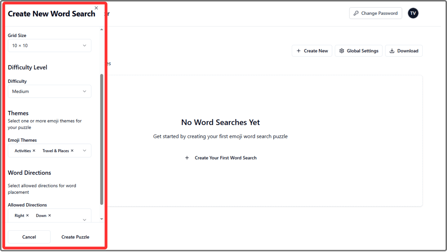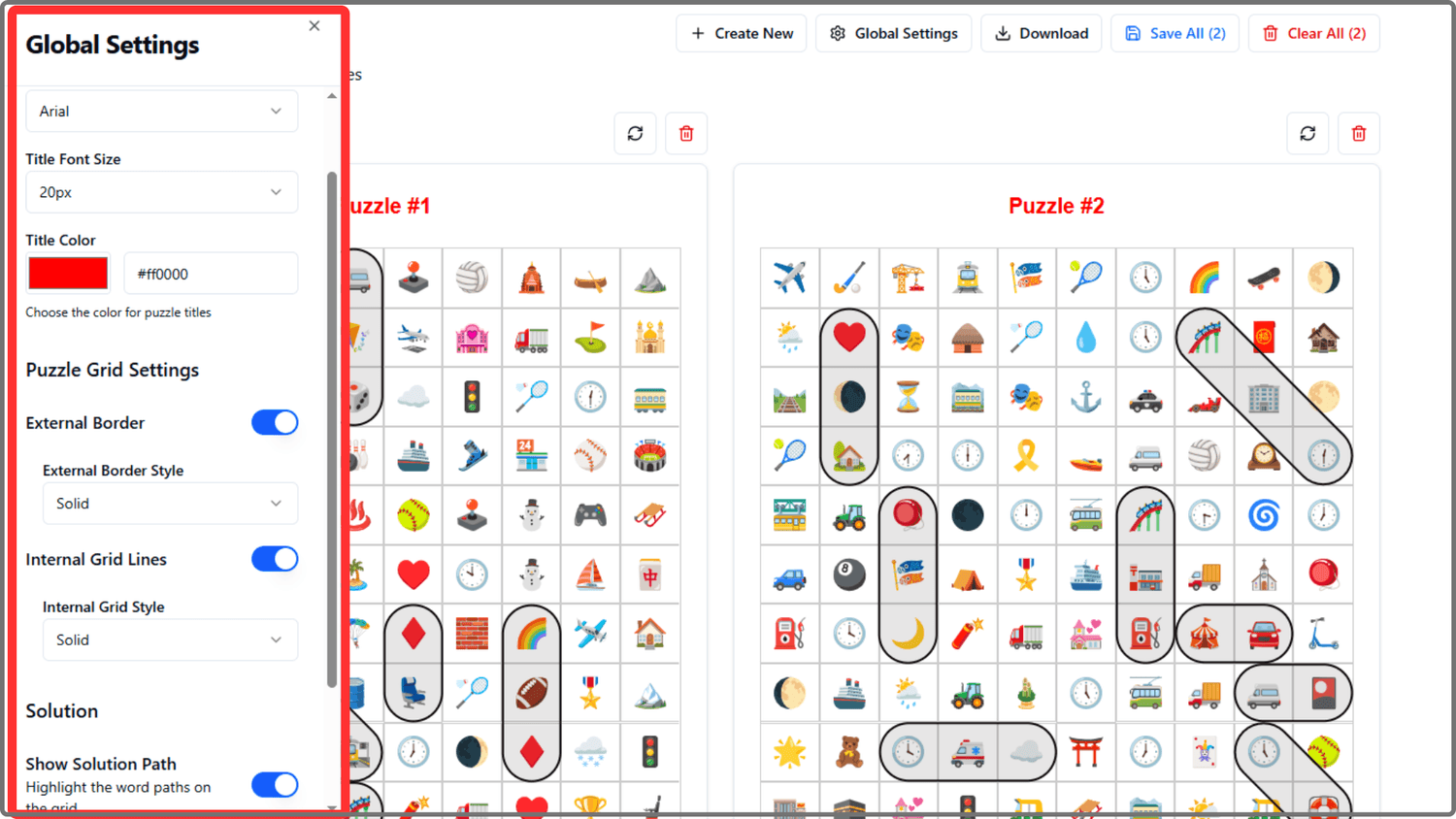 Easily create emoji word search puzzles in just a few clicks, everything is automatically done for you.