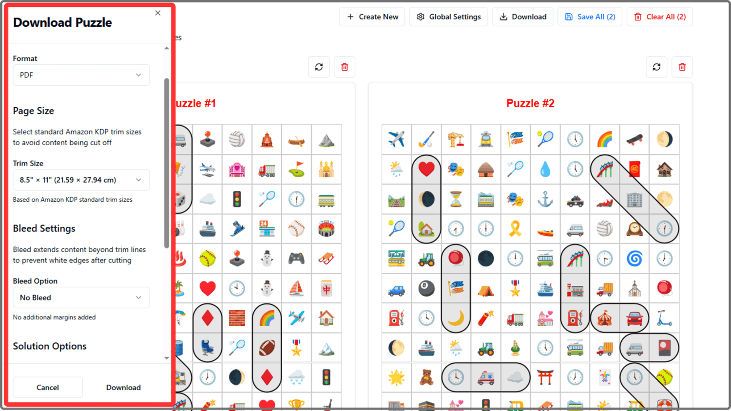 Click Download, and your Emoji Word Search puzzle book is ready to use or publish.