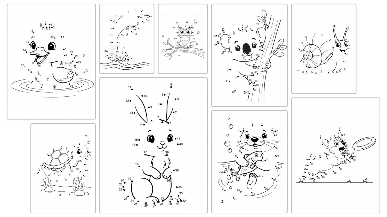 This bonus includes a set of 20 dot to dot pages featuring animal themes. The pages are ready to use and can serve as sample content, practice material, or additional pages for activity books.