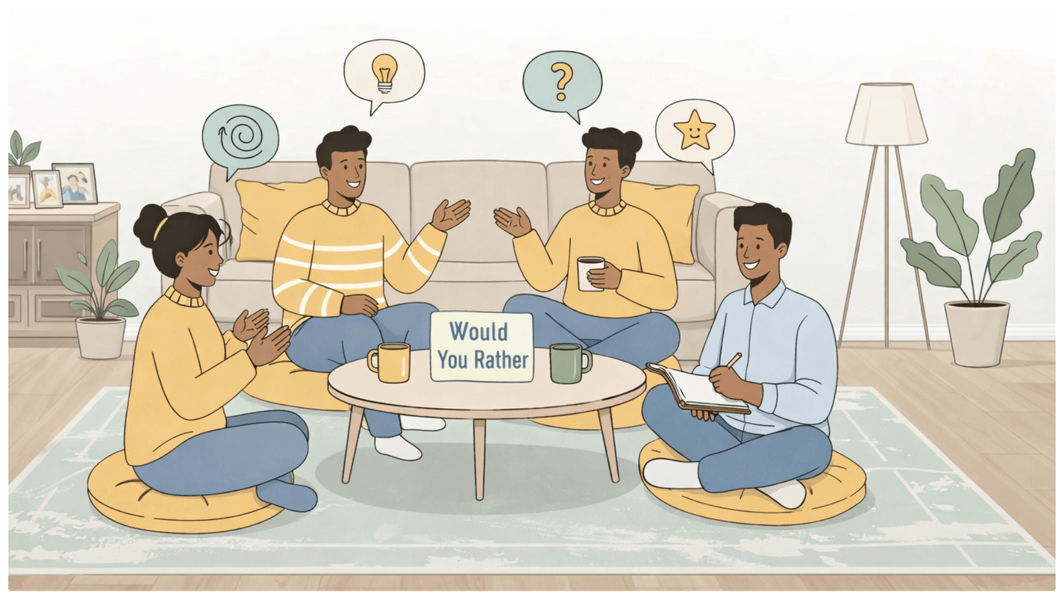 Because of its simplicity, Would You Rather works well across different ages and settings. It focuses on interaction rather than instruction, making the experience light, engaging, and easy to return to again and again.